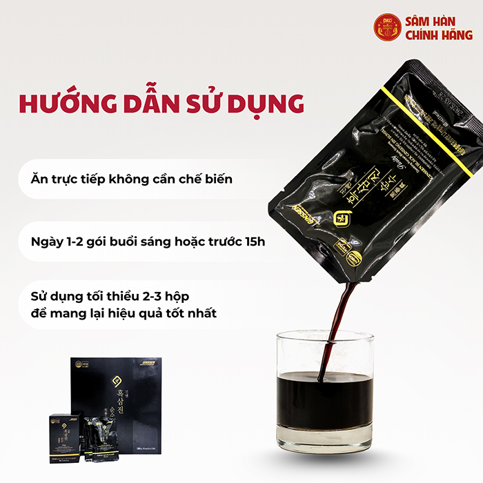 2: Thành phần: Chiết xuất hắc sâm (Saponin 1.7mg/g trở lên, thành phần chất rắn 1.7%, Hàn Quốc) chiếm 100%.